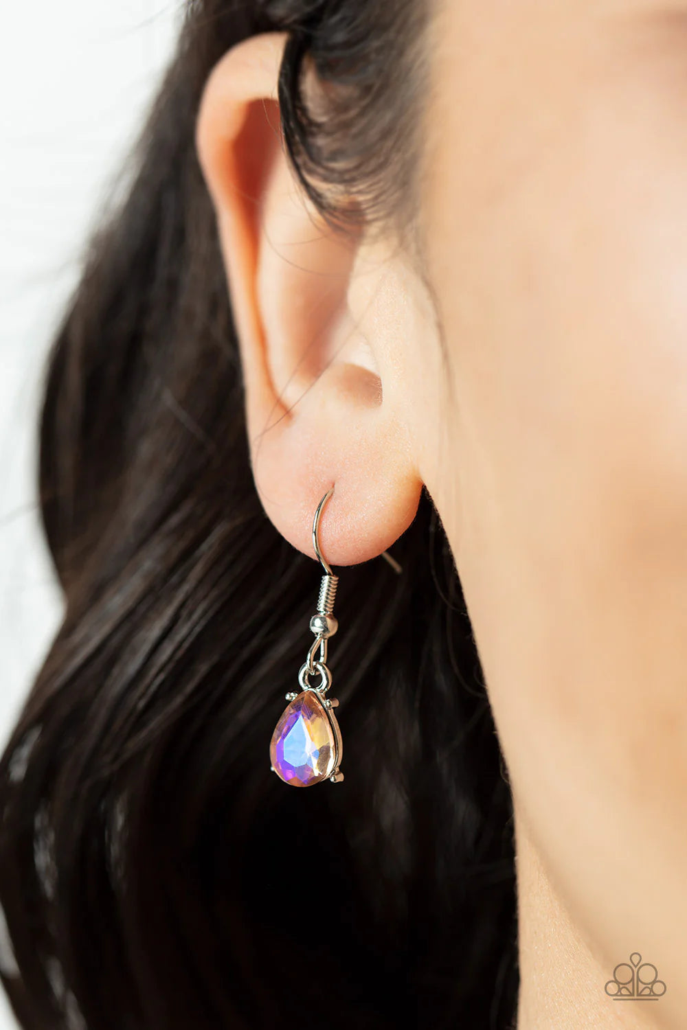 Varying in cut and shimmer, bubbly clusters of mismatched white and iridescent peach and coral rhinestones coalesce into three sparkly frames for an out-of-this-world statement below the collar. Due to its prismatic palette, color may vary. Features an adjustable clasp closure.
