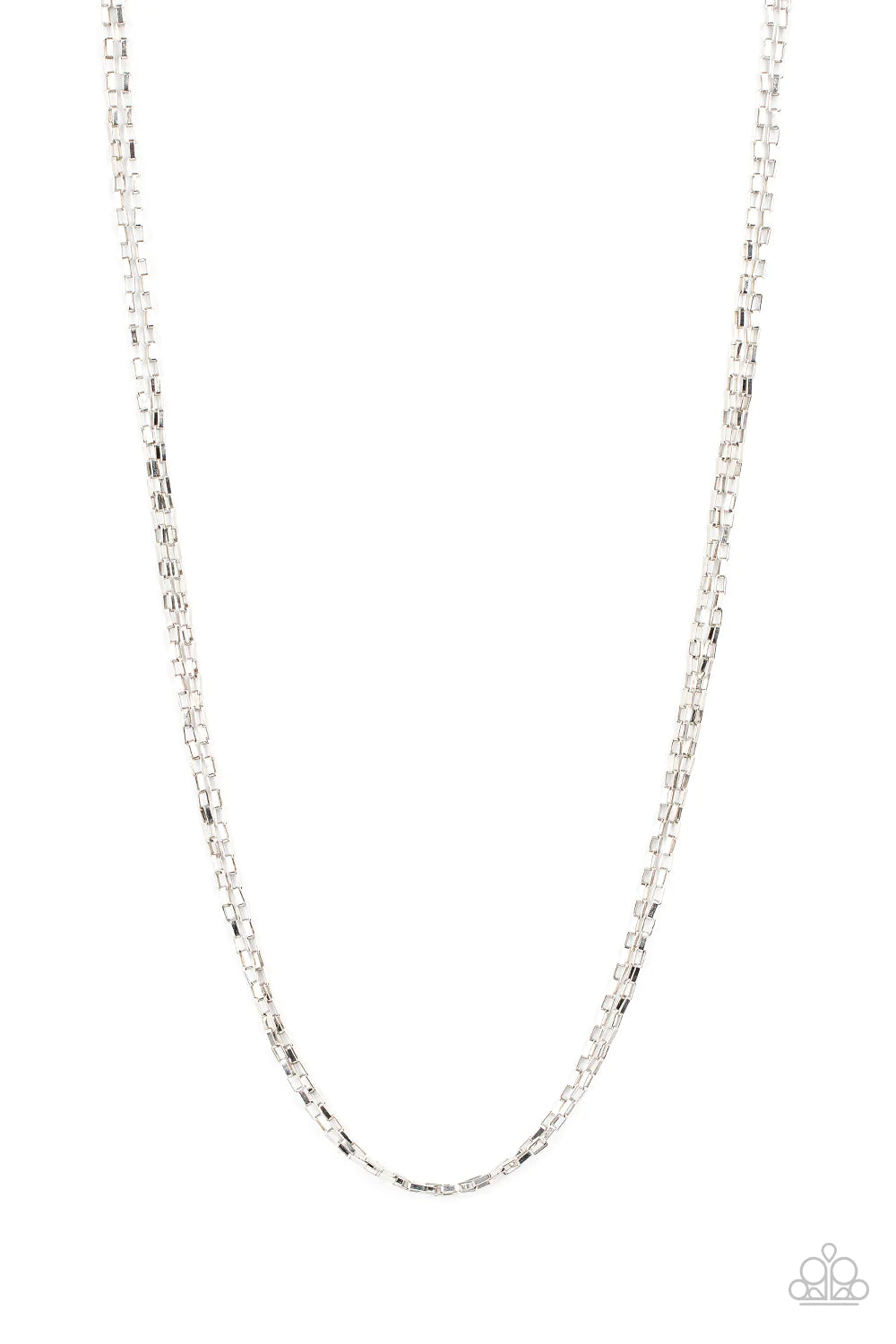 Featuring edgy rectangular links, two dainty silver chains interlock below the collar for an urban vibe. Features an adjustable clasp closure.