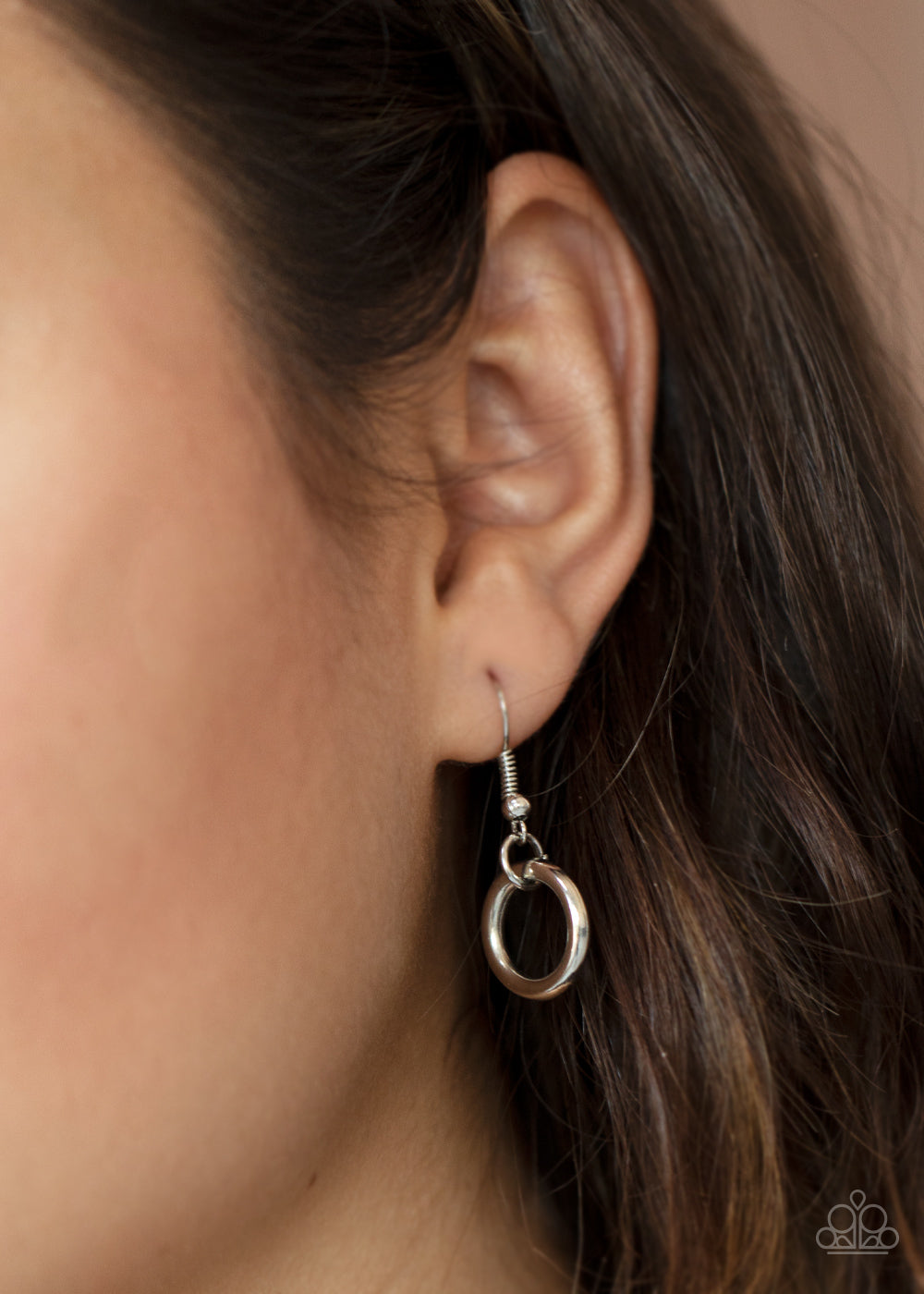 Shiny green cording knots around a pair of silver and gold hoops, creating a stacked pendant. Green suede wraps around the bottom of the gold hoop, adding an earthy flair to the seasonal display. Features an adjustable clasp closure.