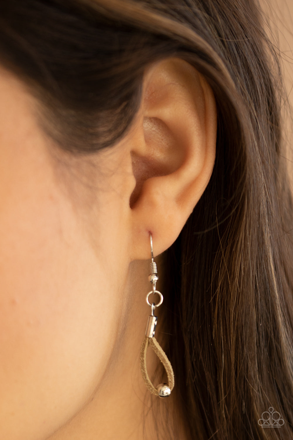 Infused with wooden and silver beads, an asymmetrical ceramic disc swings from the bottom of lengthened strands of tan suede for a colorfully earthy look. Features an adjustable clasp closure.