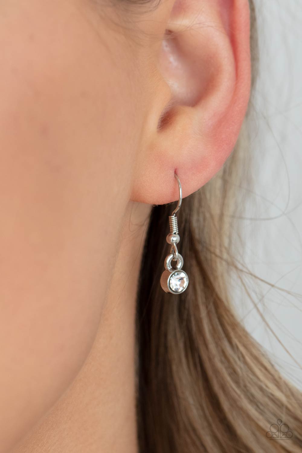 A white rhinestone encrusted fitting attaches to a ring of white rhinestones dotted with a glassy pink beaded center, creating a twinkly pendant at the bottom of a classic silver chain. Features an adjustable clasp closure.