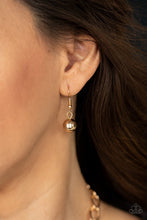 Attached to a textured gold chain, a glamorous collection of oversized gold beads and iridescent oval shaped beads are threaded along a stretchy band below the collar for a gorgeous effect. The iridescent beads feature a subtle scratch surface, adding shimmer to the refined display. Features an adjustable clasp closure.